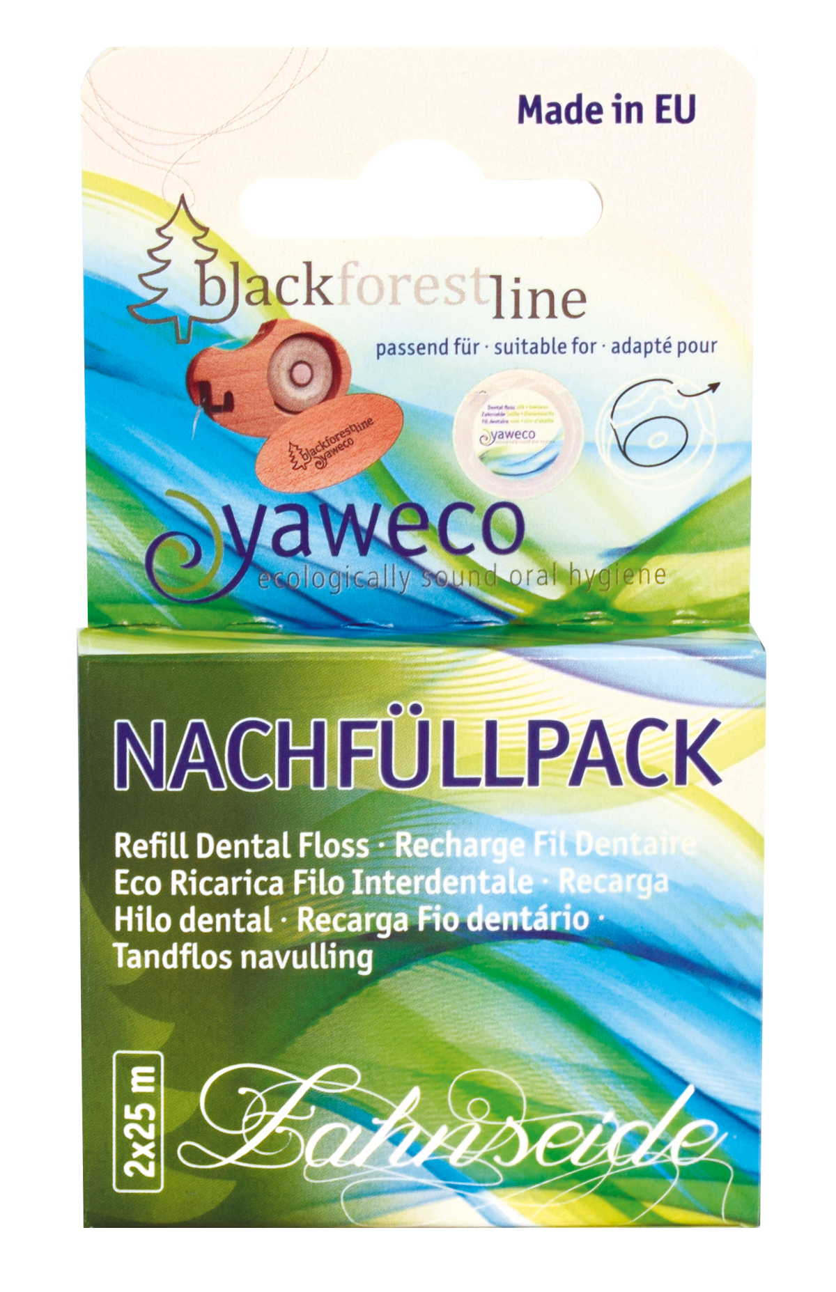 yaweco Nachfüllpackung Zahnseide aus reiner Seide mit Bienenwachs, 2 x 25 m, Nachfüllpackung für Artikel 110002 yaweco Zahnseidenspenderdose und 110003 yaweco Black Forest Line Zahnseidenbox aus heimischen Hölzern.