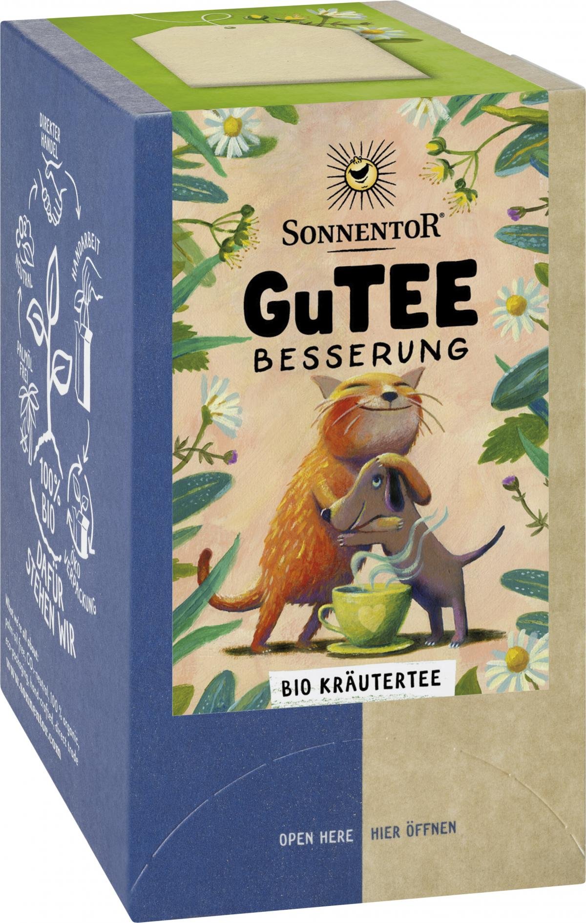 Mit dem GuTEE Besserung Tee hast du bestimmt die richtige Aufmunterung dabei. Sag mal "Alles wird gut!" mit einer Tasse Tee.