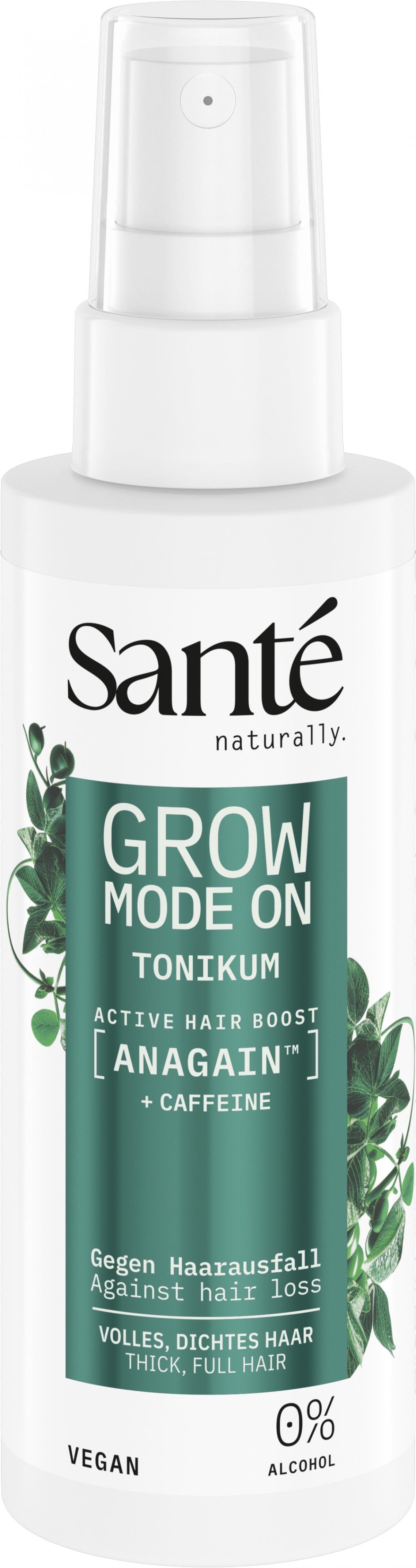 Das Santé Grow Mode On Kopfhaut-Tonikum bietet eine gezielte Pflege gegen Haarausfall und für sichtbar volleres, dichteres Haar. Es setzt direkt an der Kopfhaut an – dort, wo gesundes Haarwachstum beginnt – und unterstützt eine aktive, ausgeglichene Kopfhaut als Grundlage für kräftiges Haar. Die leichte Formulierung lässt sich unkompliziert in jede Pflegeroutine integrieren, ohne zu fetten oder zu beschweren. Die innovative Formel mit AnaGain™ unterstützt den natürlichen Haarwachstumszyklus gezielt. Der pflanzliche Wirkstoff hilft dabei, die Aktivität der Haarfollikel zu fördern, die Wachstumsphase der Haare zu unterstützen und Ruhephasen zu verkürzen. So kann Haarausfall reduziert werden und das Haar mit der Zeit voller und dichter wirken.